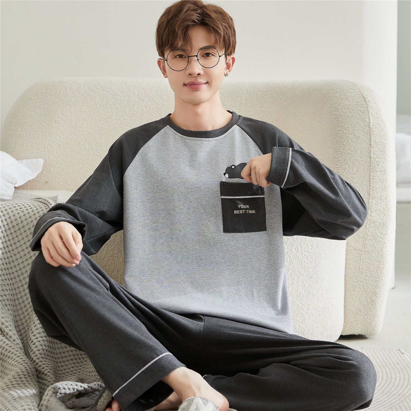 睡衣男生春秋季长袖纯棉套装大童男孩学生12-13-15岁休闲风家居服
