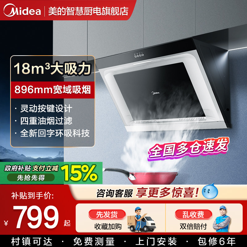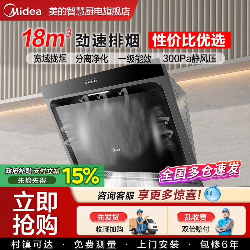 美的华凌油烟机家用厨房大吸力侧吸式排抽油烟机以旧换新补贴H3S