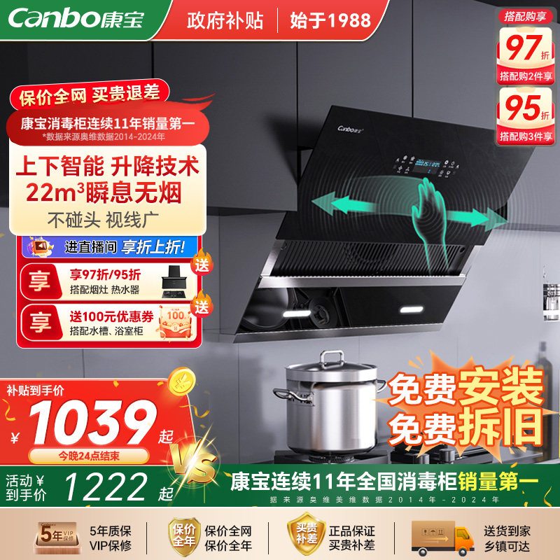 Canbo/康宝BE906抽油烟机侧吸壁挂式智能升降吸油烟机家用体感式