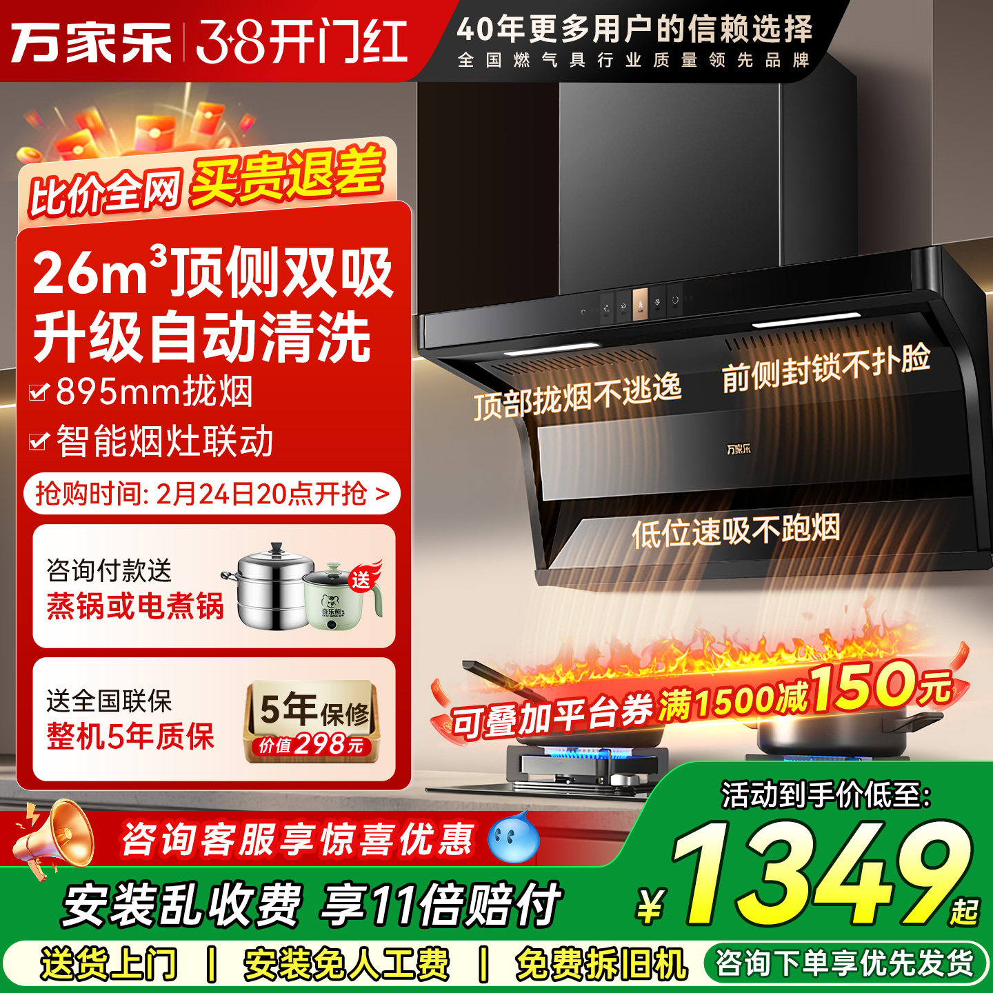 万和抽油烟机侧吸式21m³大吸力厨房家用自动旋清洗一级能效J525