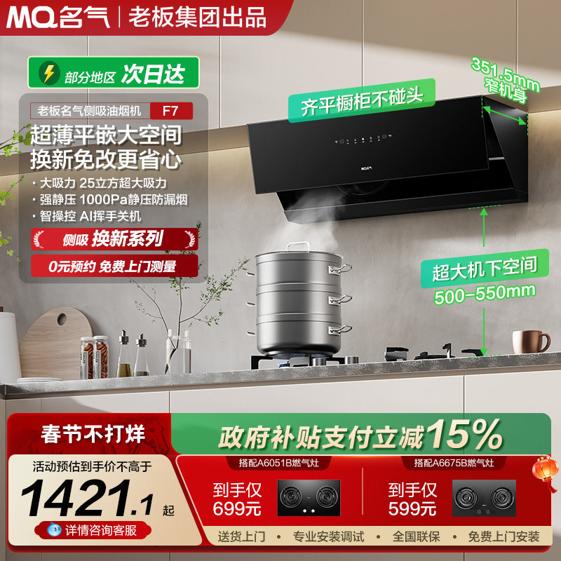 名气抽油烟机侧吸F8厨房抽风机家用大吸力薄平嵌吸油烟机老板出品