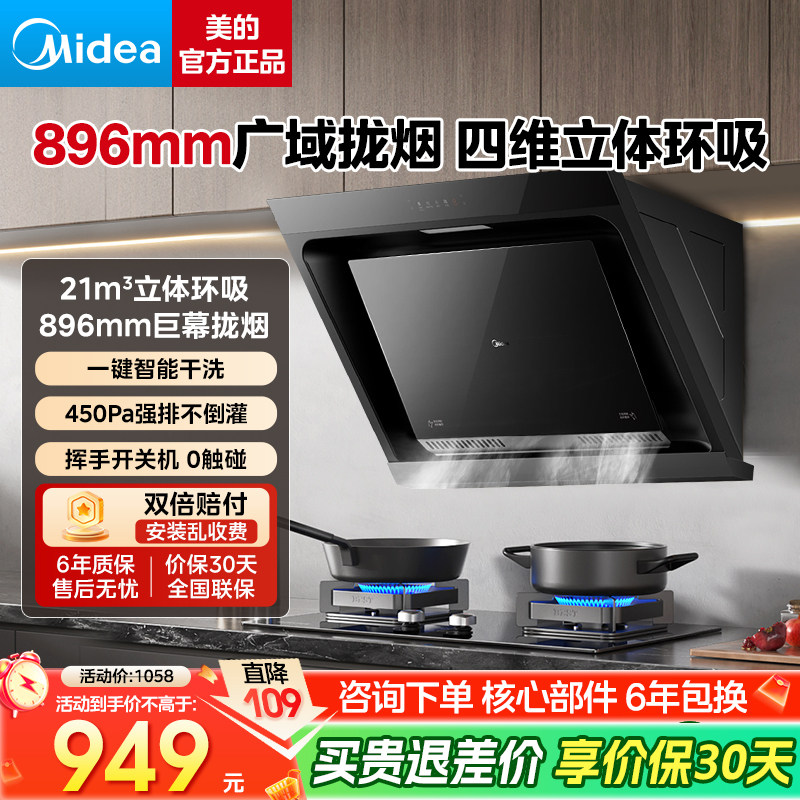 美的高端MK家用抽油烟机侧吸式22立方级大吸力变频烟灶联动MK07M3