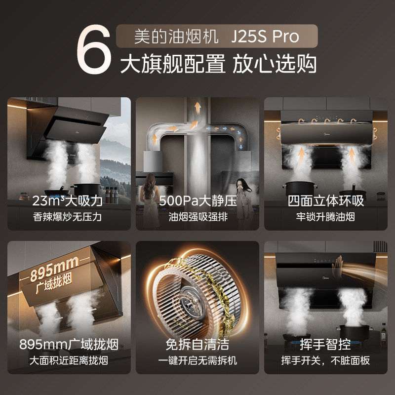 美的官方正品抽油烟机J25S PRO侧吸家用厨房大吸力免拆洗吸油烟机