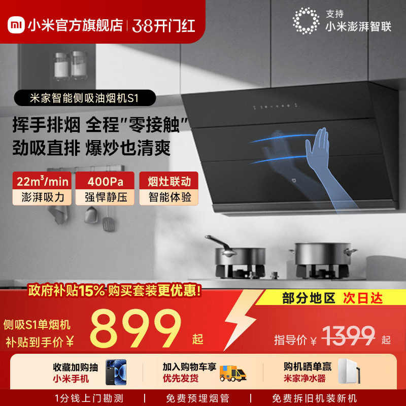 小米官方米家智能侧吸油烟机S1厨房家用抽油烟机大吸力以旧换新