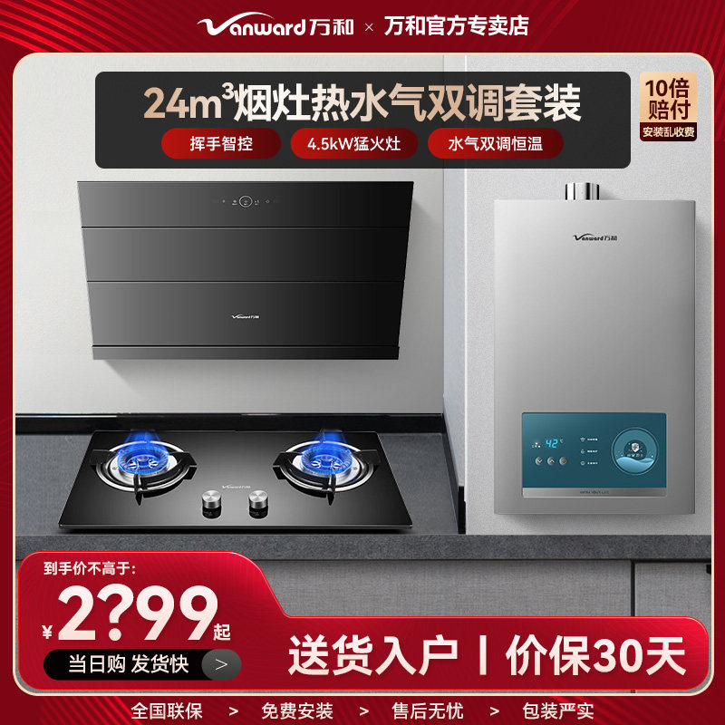 万和抽油烟机侧吸23m³燃气灶热水器16升套餐厨房三件套组合官方