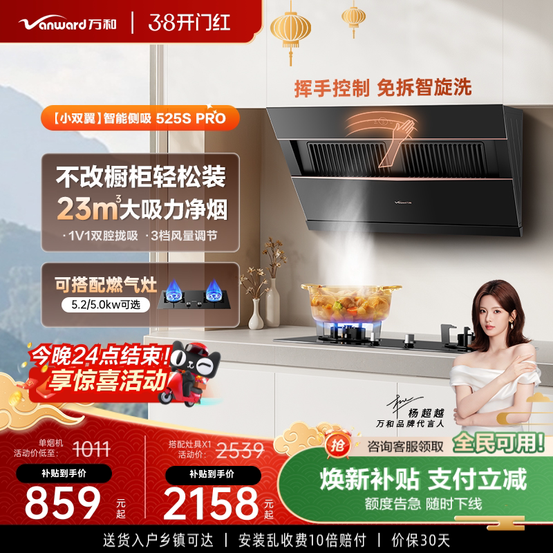 [百亿补贴]万和小双翼家用厨房大吸力侧吸式烟机抽油烟机525PRO