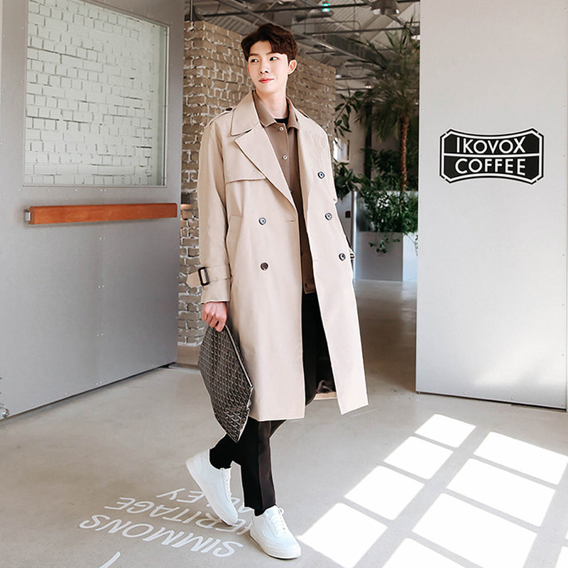 - 风衣男 中长款 青年韩版