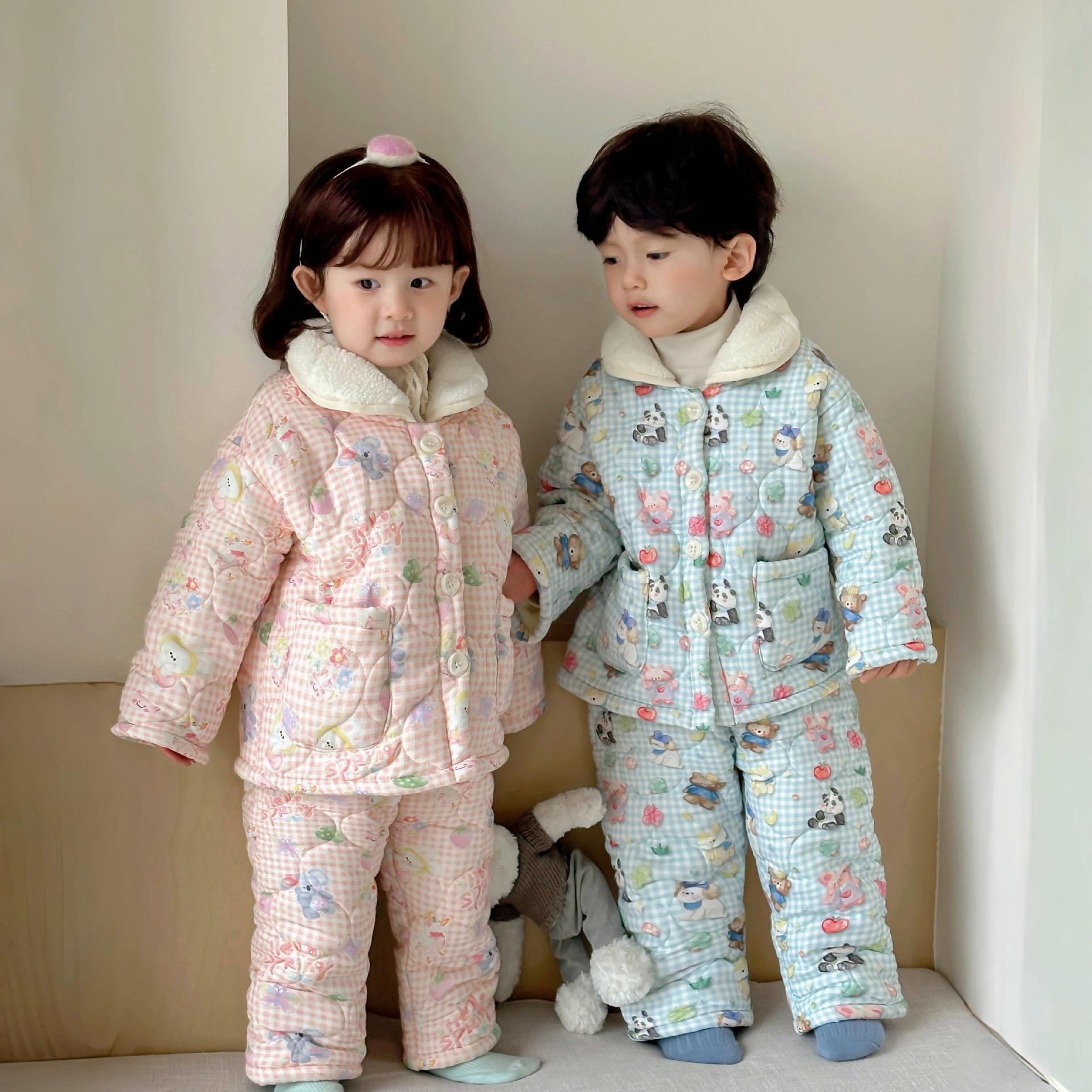 25新儿童睡衣冬季加厚款小孩女童保暖宝宝加绒三层夹棉男童家居套