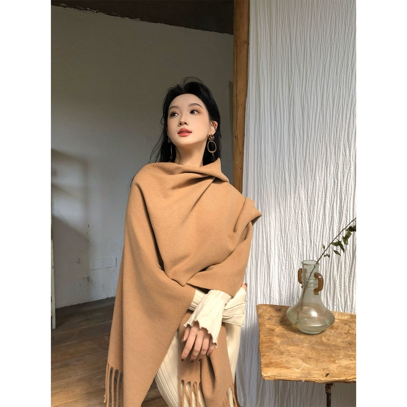 纯色高级感2025新款披肩外搭云南九寨沟旅游披风加厚冬季保暖围巾