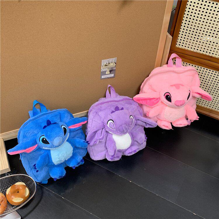 史迪奇双肩背包卡通小怪兽女生甜美可爱ins风蓝色毛绒出街公仔包