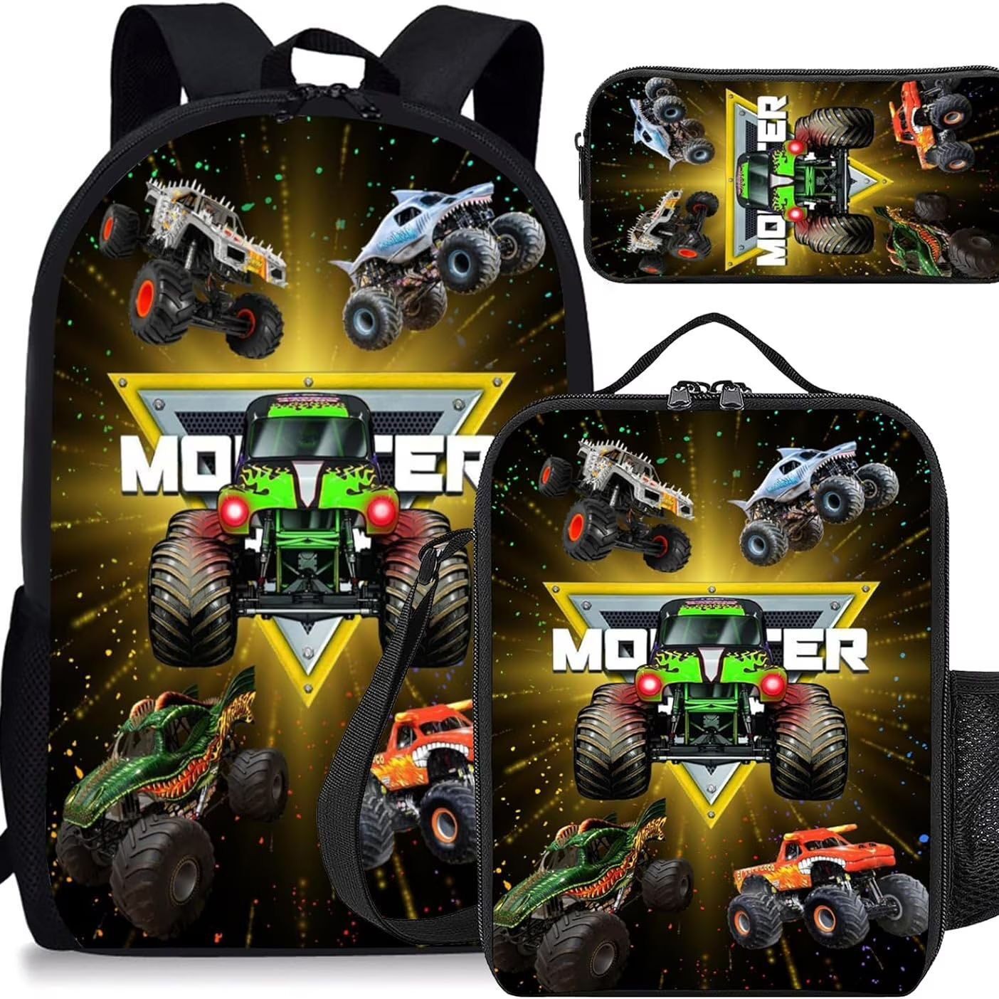 跨境Monster jam怪兽卡车中小学生儿童书包DIY印花男女孩双肩背包