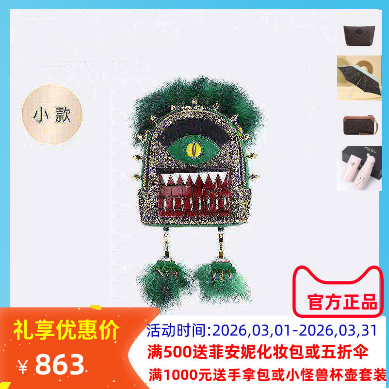 Fion/菲安妮小怪兽双肩包 新款女包精致时尚小巧单肩包FAAFIPK055