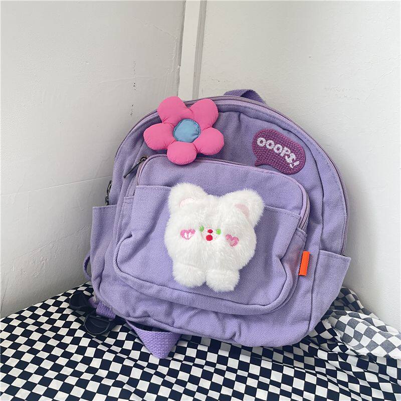 日光欲原创迷你双肩包可爱少女花朵小怪兽帆布Y2K小众幼稚园书包