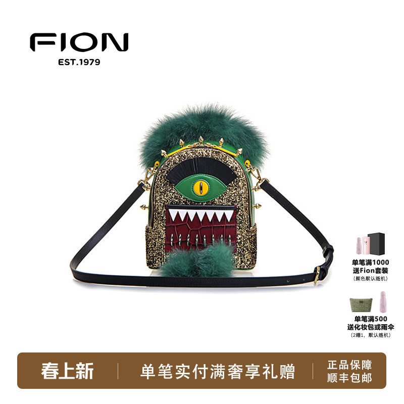 Fion/菲安妮小怪兽双肩包 2022新款轻奢时尚单肩女包FAAFIPK051