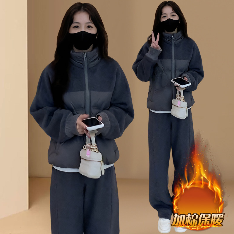 棉衣套装女2025新款韩版冬装修身棉袄外套加厚保暖羽绒棉服两件套