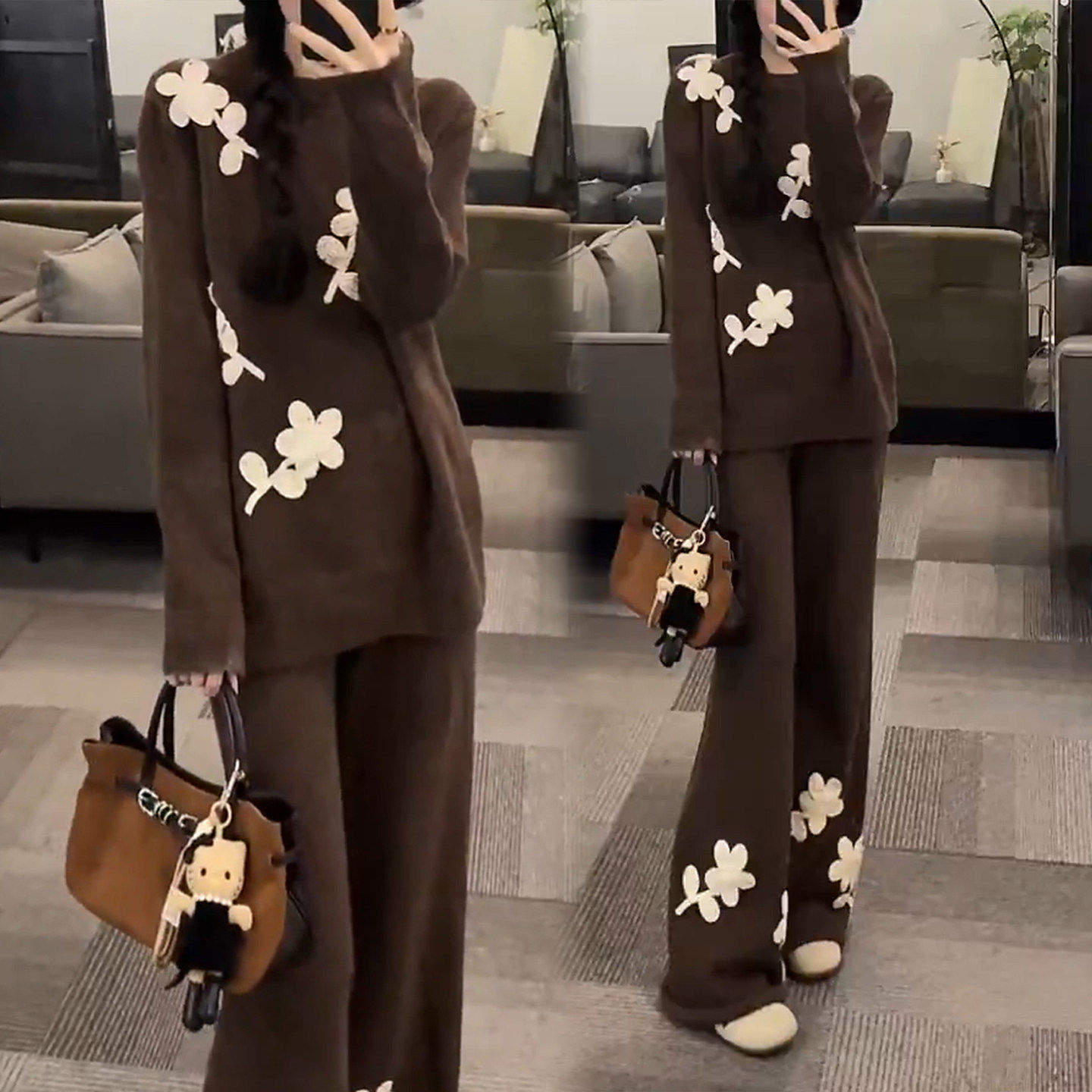 - 羊绒套装阔腿裤