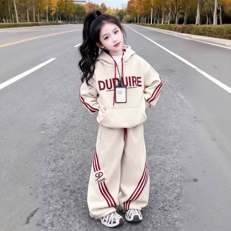 女童加绒套装秋冬款2026新款儿童洋气卫衣冬装女孩韩版休闲两件套