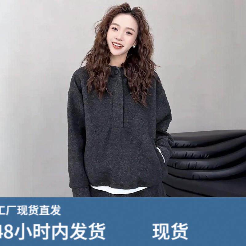 韩版巨好看的冬装一整套连帽运动衫套装女慵懒风加厚保暖宽松两件