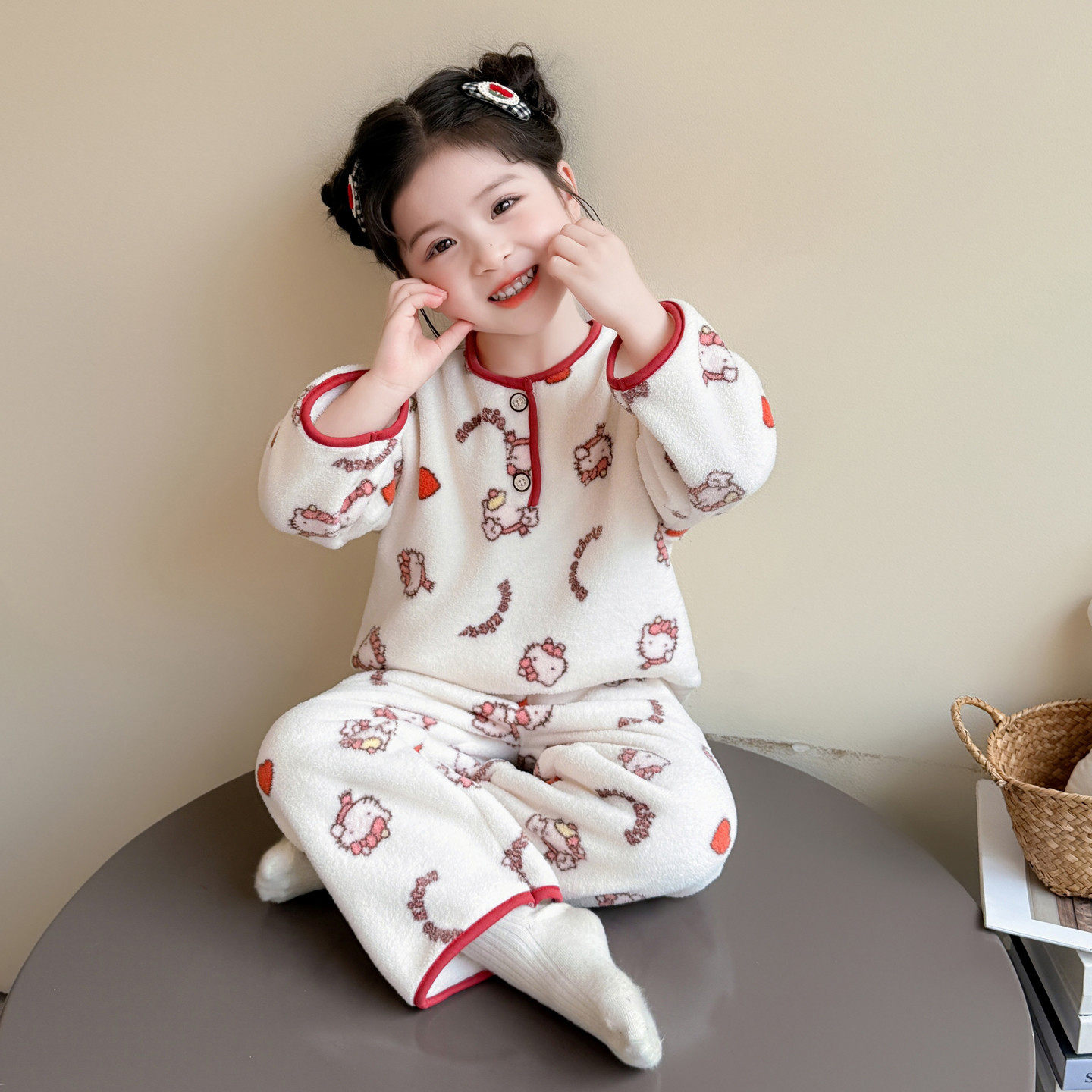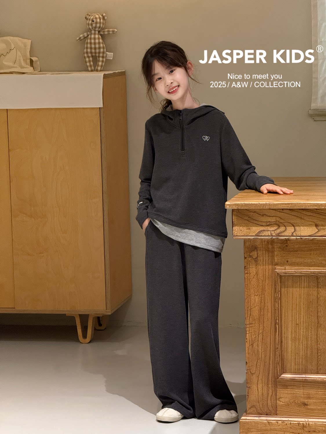 JASPER正版2025秋冬装女童姜暖绒套装韩版儿童两件套阔腿裤亲子潮