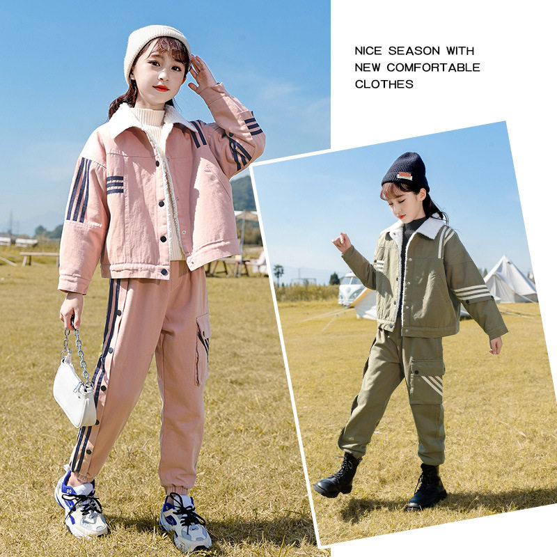 女童冬装套装2025新款秋冬装儿童韩版加绒加厚套装工装套装两件套