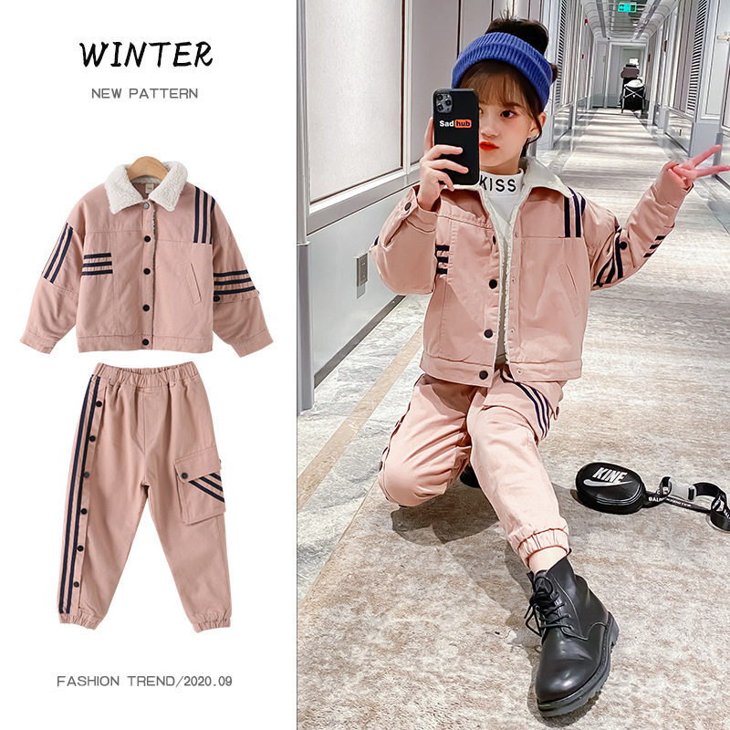 女童冬装套装2026新款秋冬装儿童韩版加绒加厚套装工装套装两件套