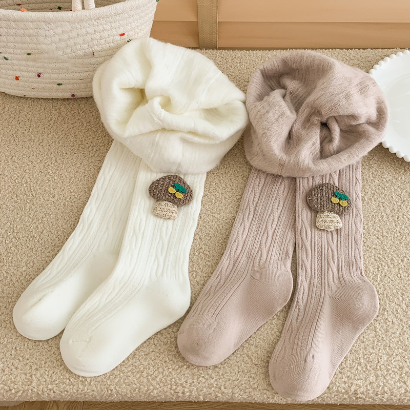 秋冬季儿童连裤袜加厚加绒纯棉婴儿连体袜白色打底裤袜宝宝毛圈袜