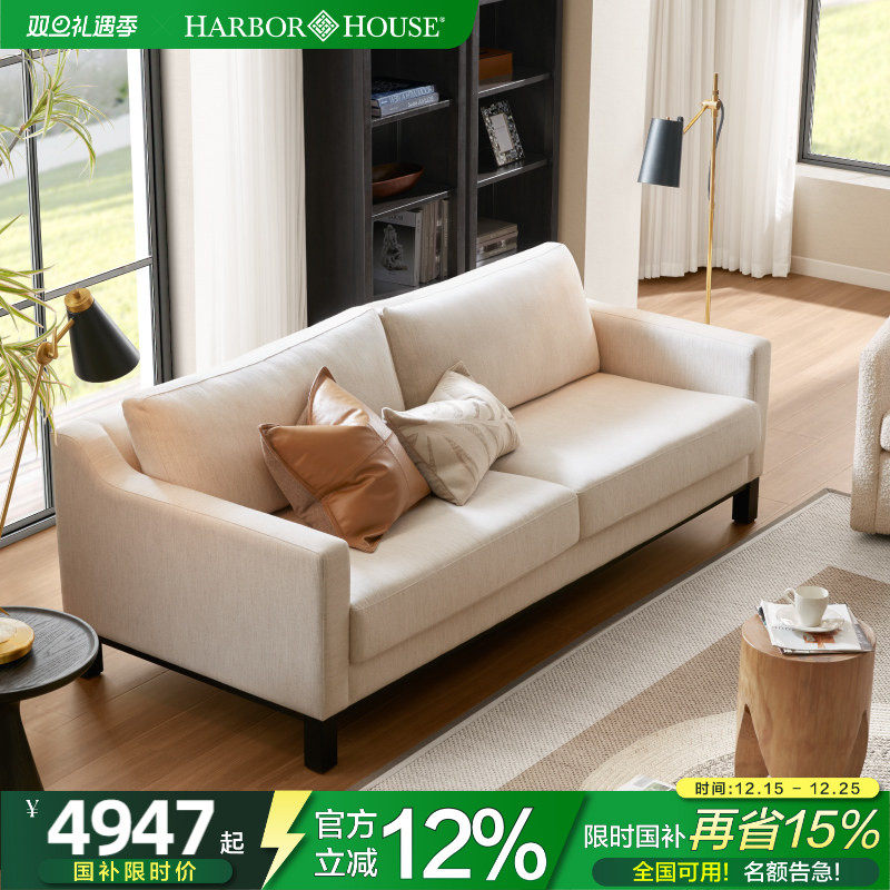 HarborHouse新品现代简约家具棉麻客厅可拆卸软包三人位布艺沙发