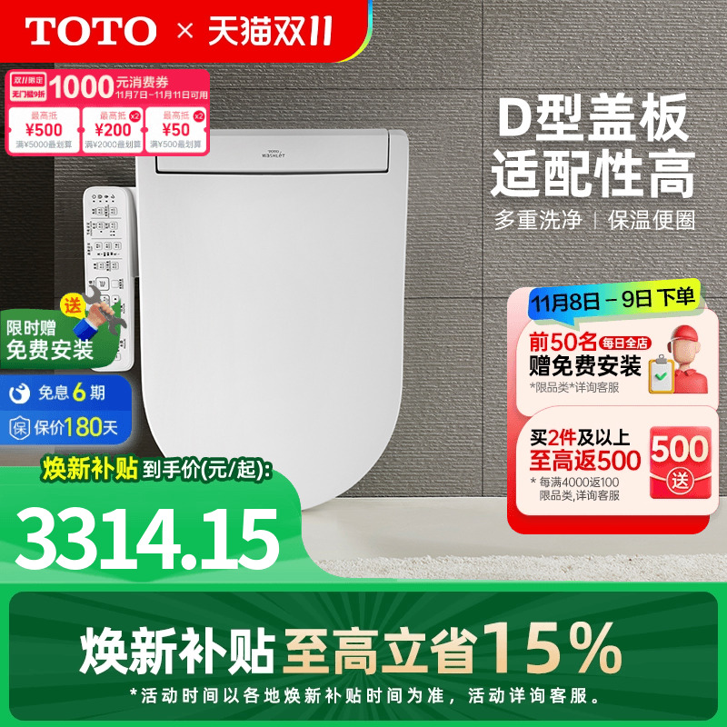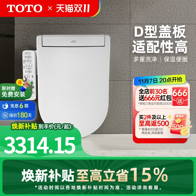 【焕新补贴】TOTO即热式D型智能马桶盖卫洗丽坐便盖板33320(03-A)