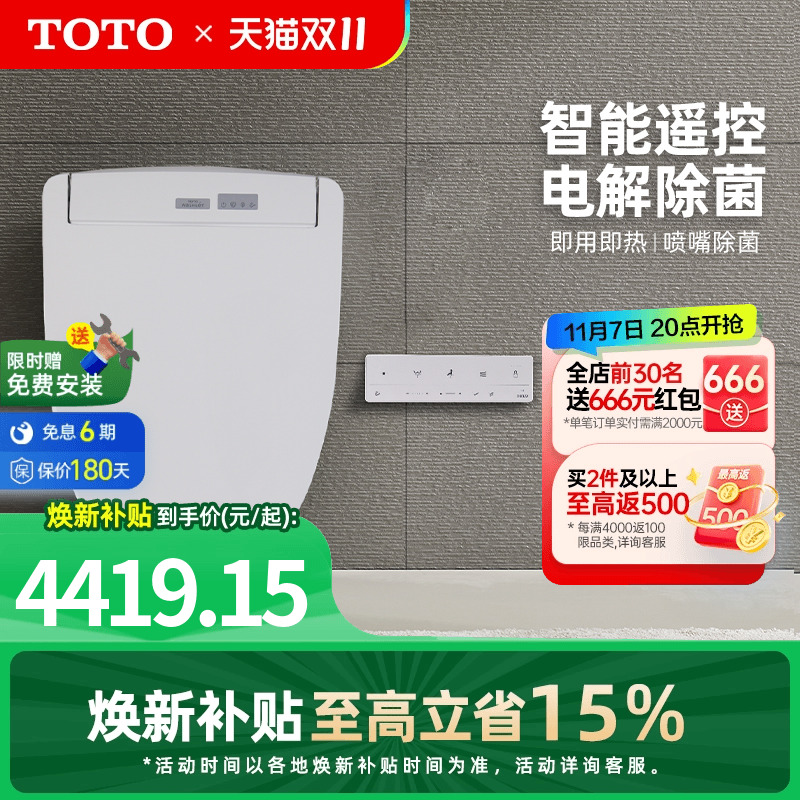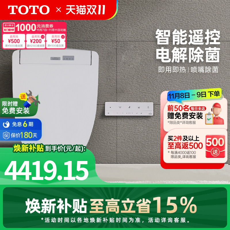【TOTO官方免费安装】卫洗丽TCF3F460/3F260电解水除菌智能马桶盖