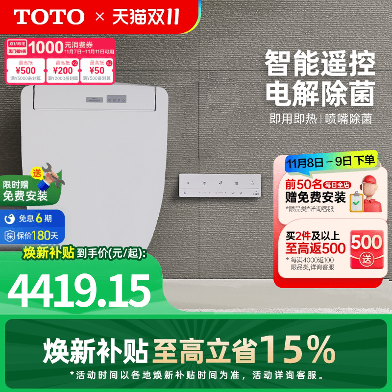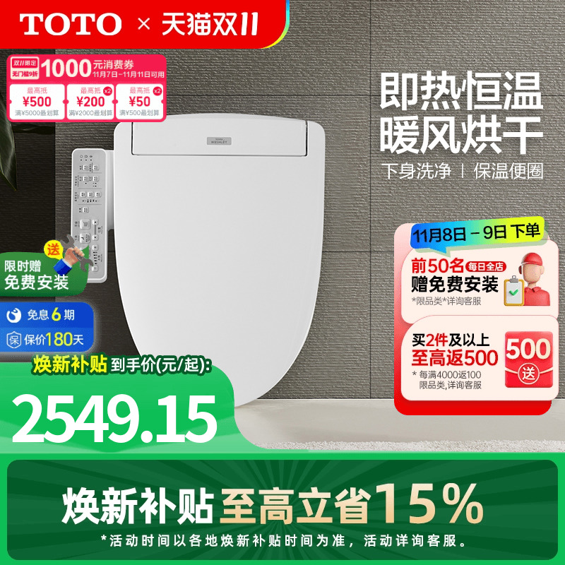 TOTO智能马桶盖TCF2B710/2B910/3B360坐便器卫洗丽清洗臀部烘干