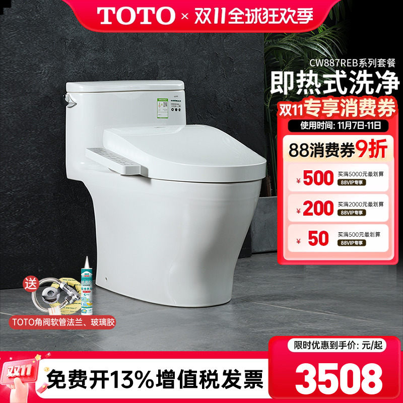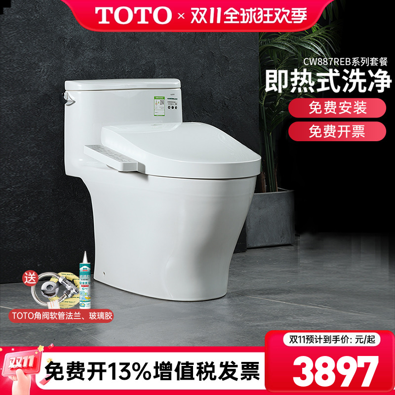 TOTO智能马桶CW887REB+TCF3F460卫洗丽即热智能盖坐便器套餐
