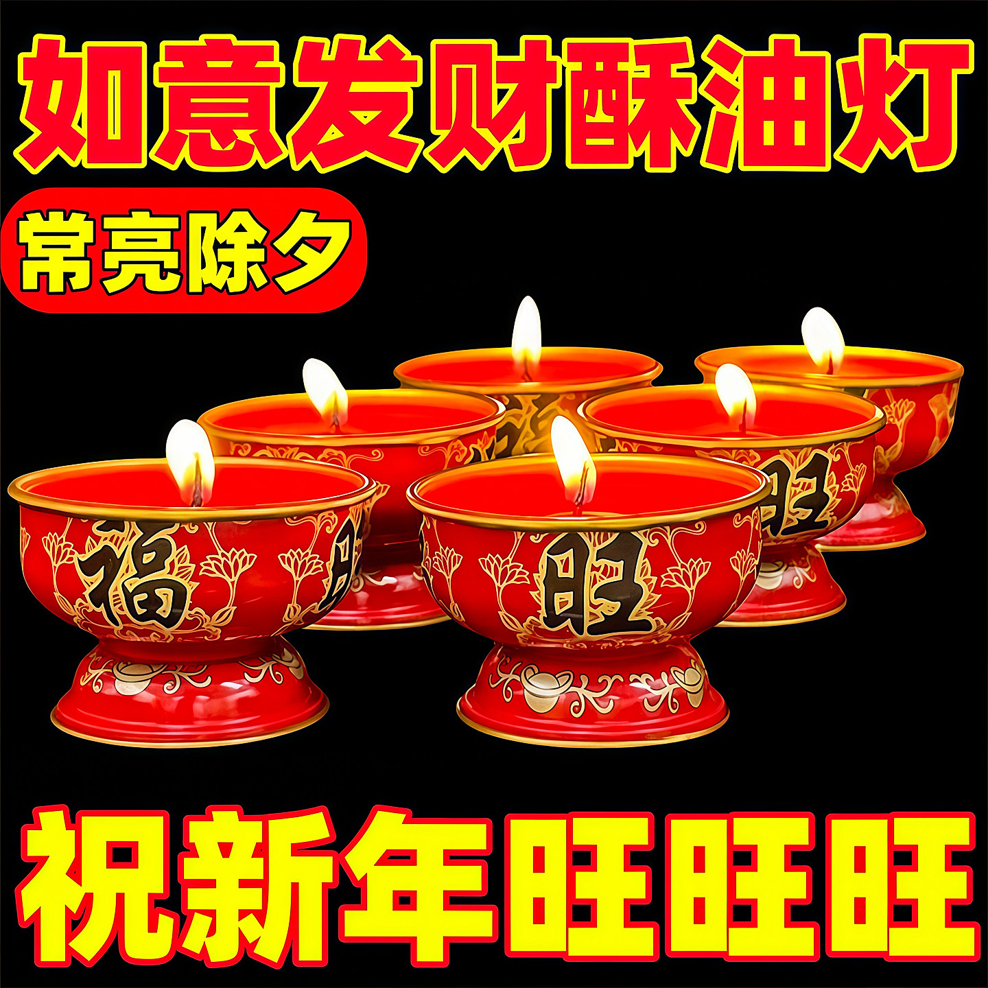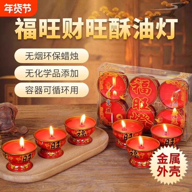 福旺酥油蜡烛8小时金属灯座家用喜庆过年喜庆长明新款蜡烛油酥灯