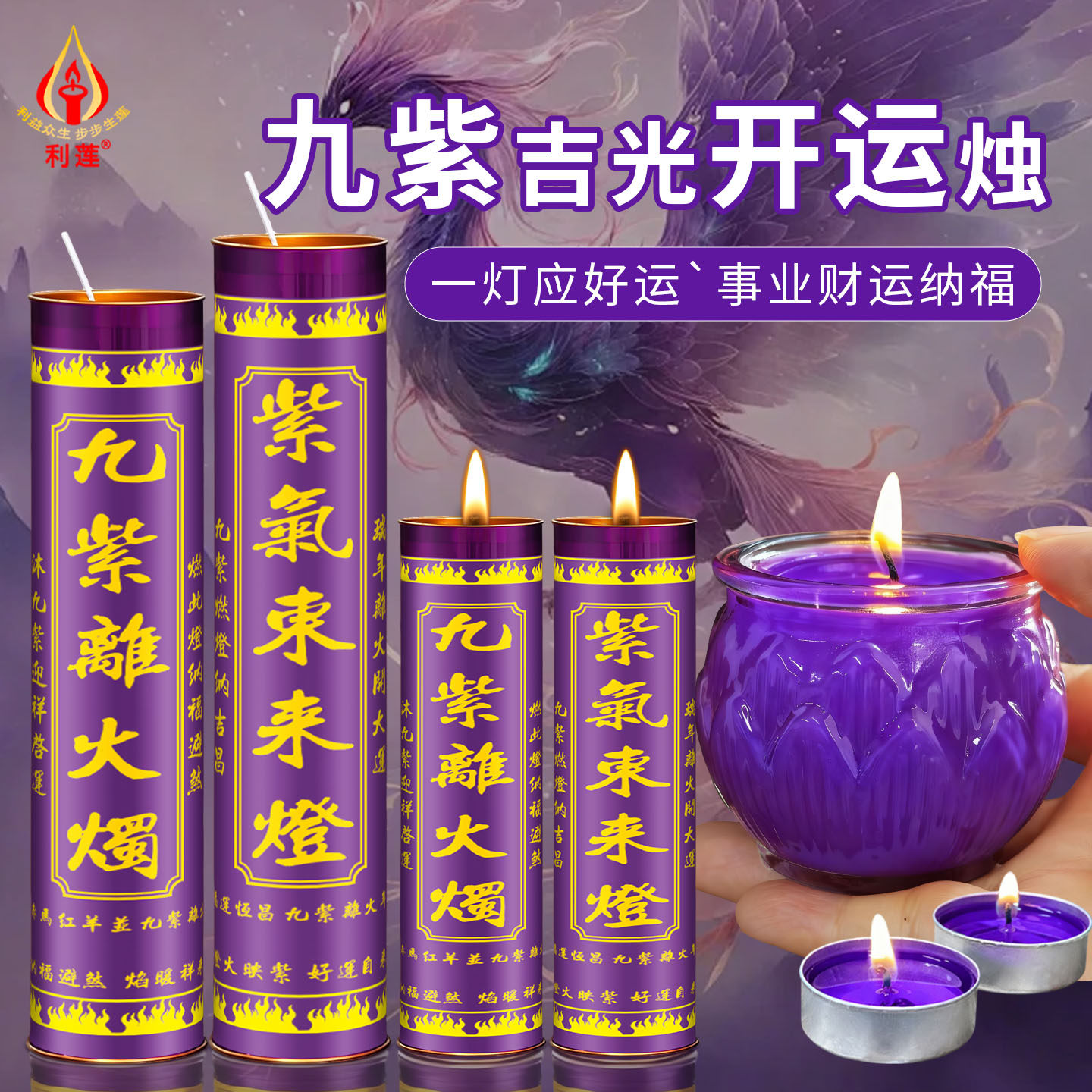 九紫吉光蜡烛招财灯九紫离火开运灯紫色酥油蜡烛7天斗烛纳财紫烛