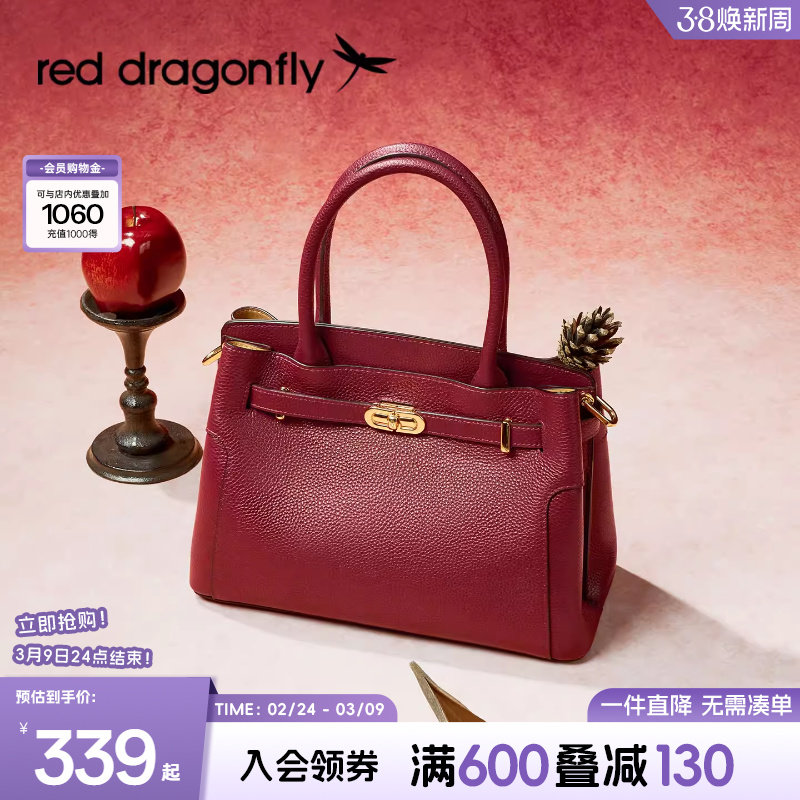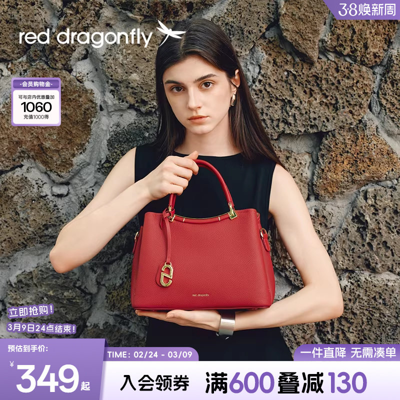 红蜻蜓妈妈款婚包女红色手提真皮牛皮喜婆婆生日礼物单肩结婚包包