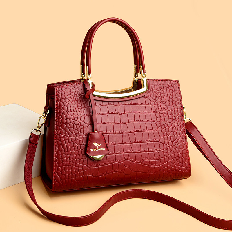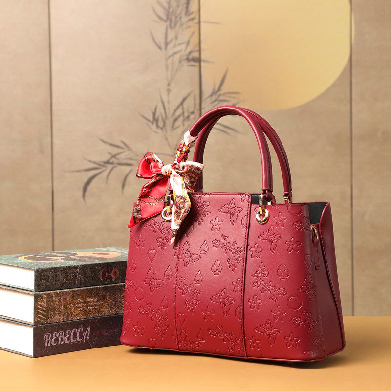 丹希路新款轻奢真皮女包婆婆手提包中年红色结婚婚包送妈妈包大气