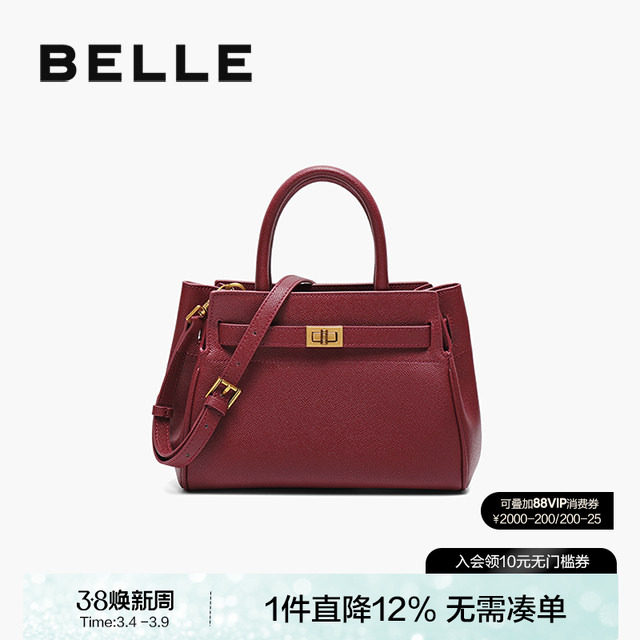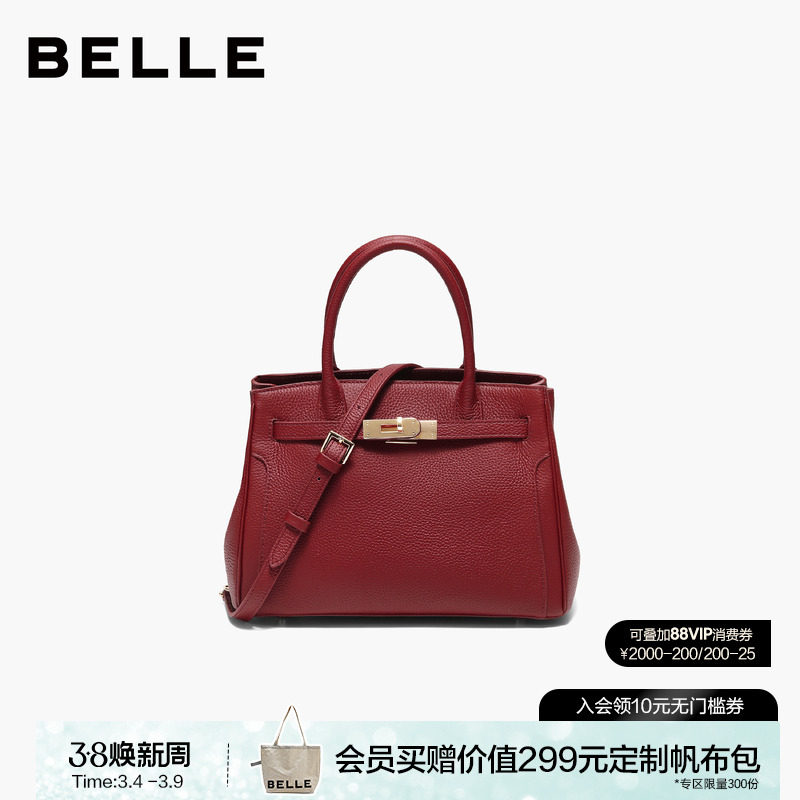 百丽包包女红色新娘婚包大容量手提包送礼盒妈妈包斜挎包X5348CX0