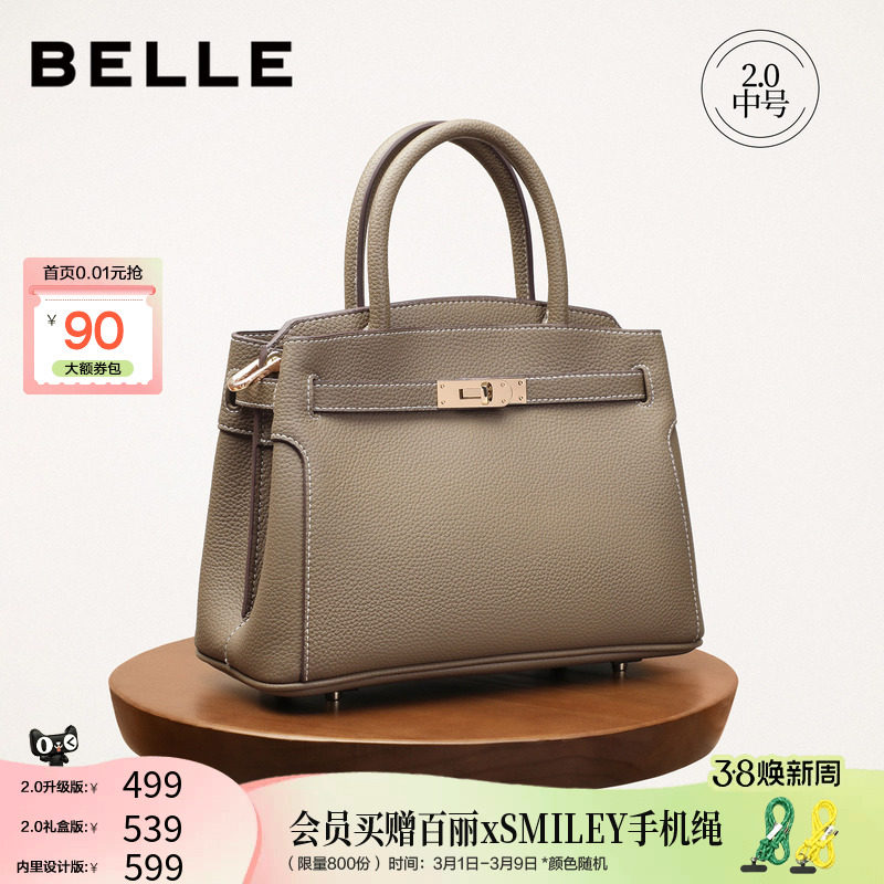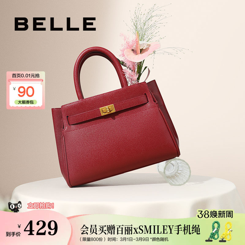 百丽女包新款商场同款质感真皮手提包通勤铂金包红色婚包X7348AX6