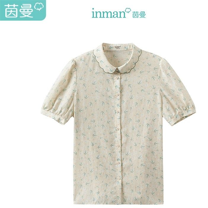 特价清仓打折茵曼莱赛尔亚麻透气花瓣领衬衫2025夏季女装短袖衬衣
