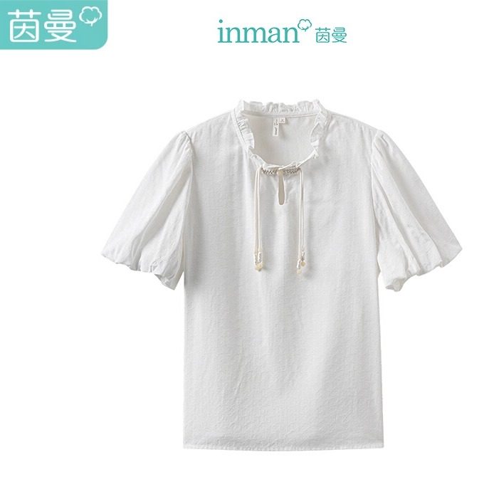特价清仓打折茵曼新中式立领舒适衬衫2025夏季女装泡泡袖衬衣上衣