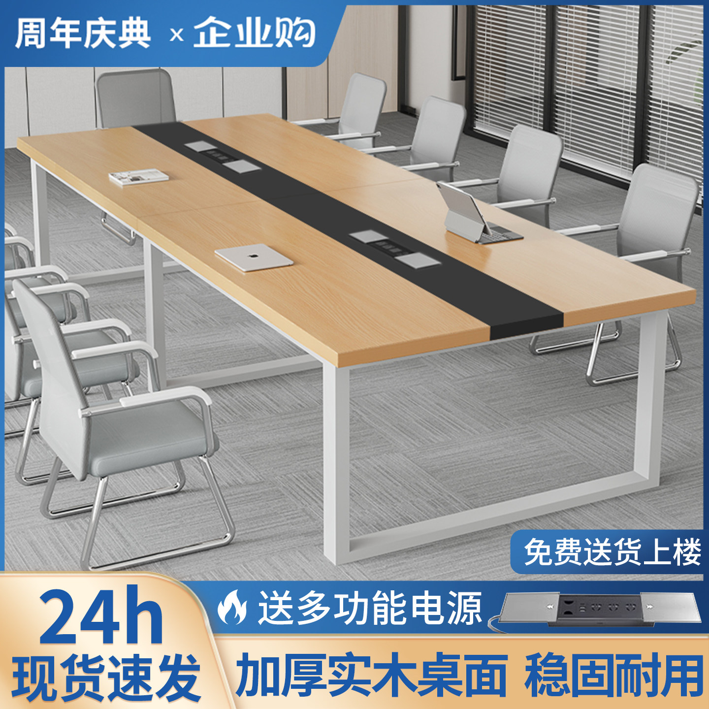 实木会议桌带插排培训桌公司会议室办公桌可定制简易组装长条桌子