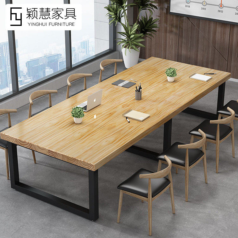 实木会议桌工作台电脑桌洽谈桌椅loft办公桌简约现代大型长条桌子