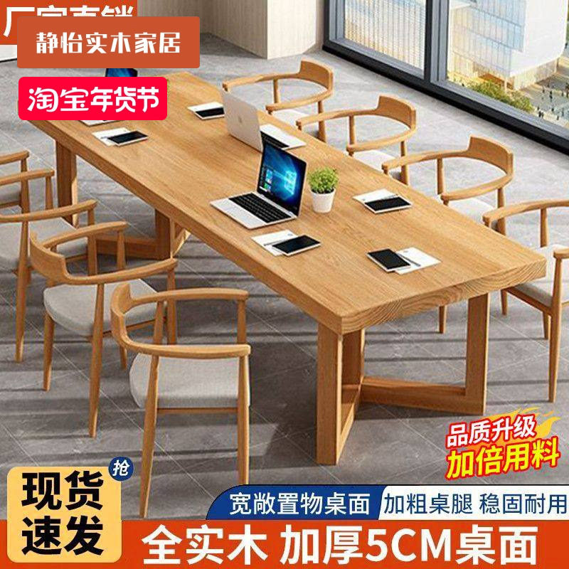 实木会议桌长桌简约现代会议室桌椅组合轻奢高级感小型长桌工作台