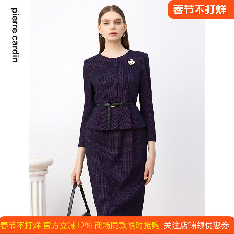 商场同款皮尔卡丹女装连衣裙职业长袖秋季通勤假两件P3425E3993Z3