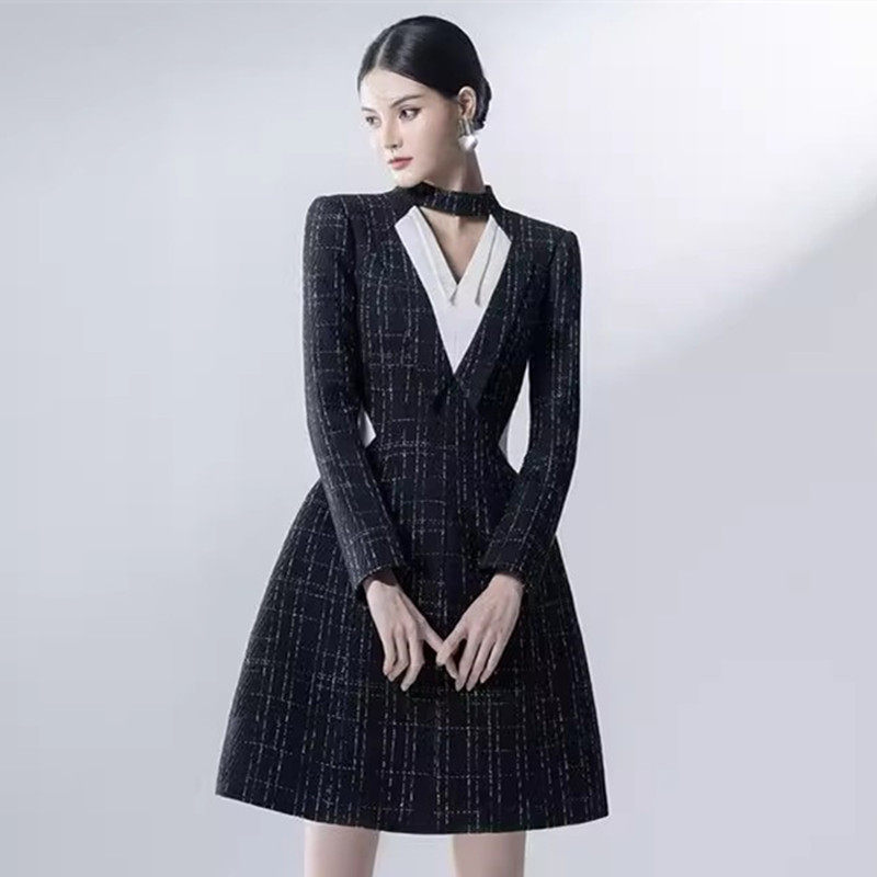 高级感气质职业西装连衣裙女春秋季修身高级感黑色长袖西服裙小众