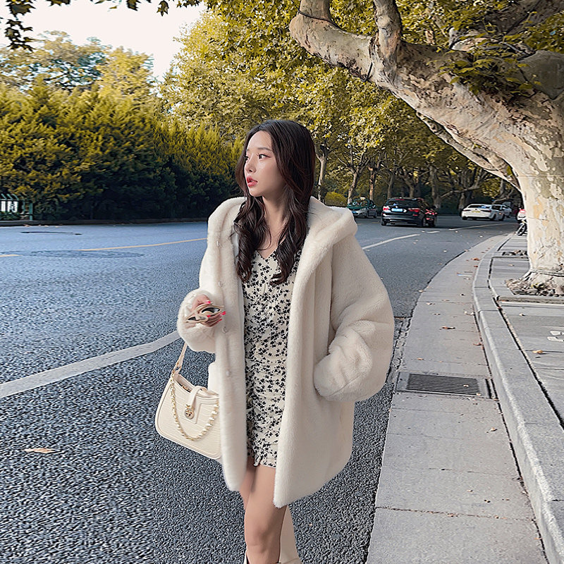 2025冬新款韩版仿皮草貂皮大衣女水貂绒中长款连帽毛毛外套天鹅绒