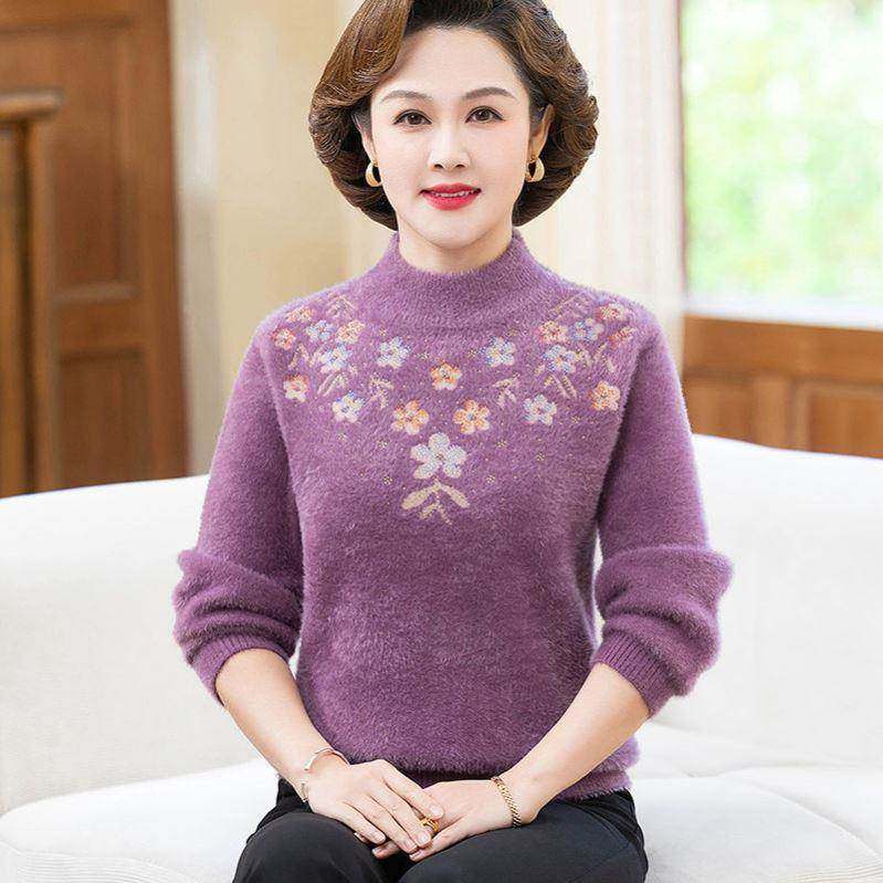 妈妈秋冬装水貂绒毛衣中年妇女洋气衣服中老年人冬装加厚打底衫女