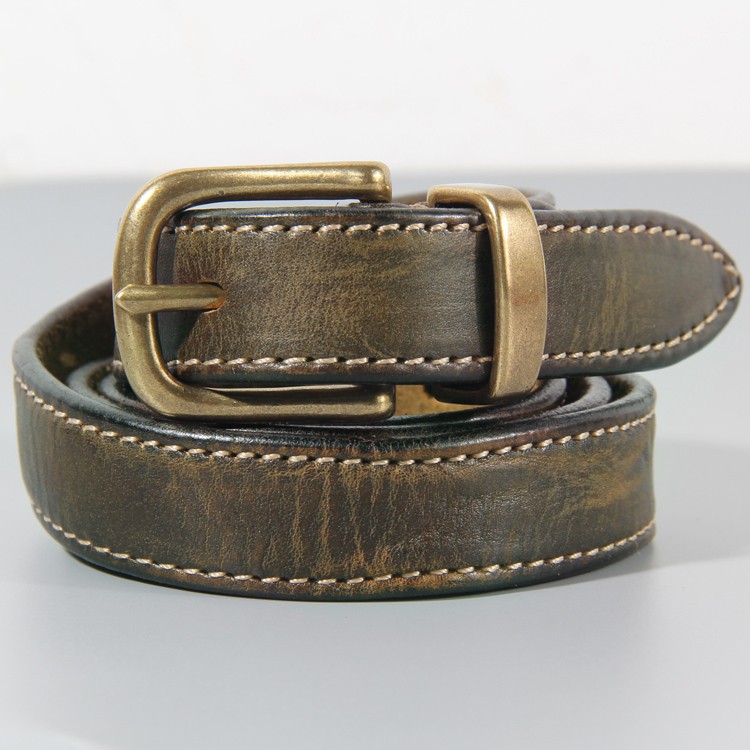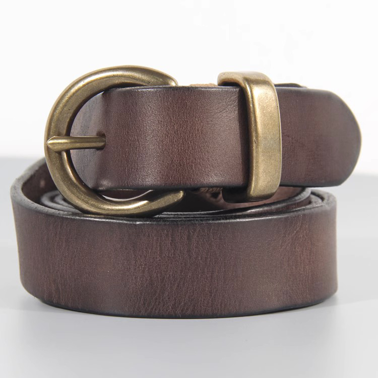 女士细款真皮腰带进口植鞣粒面加厚头层牛皮手工复古休闲铜扣皮带