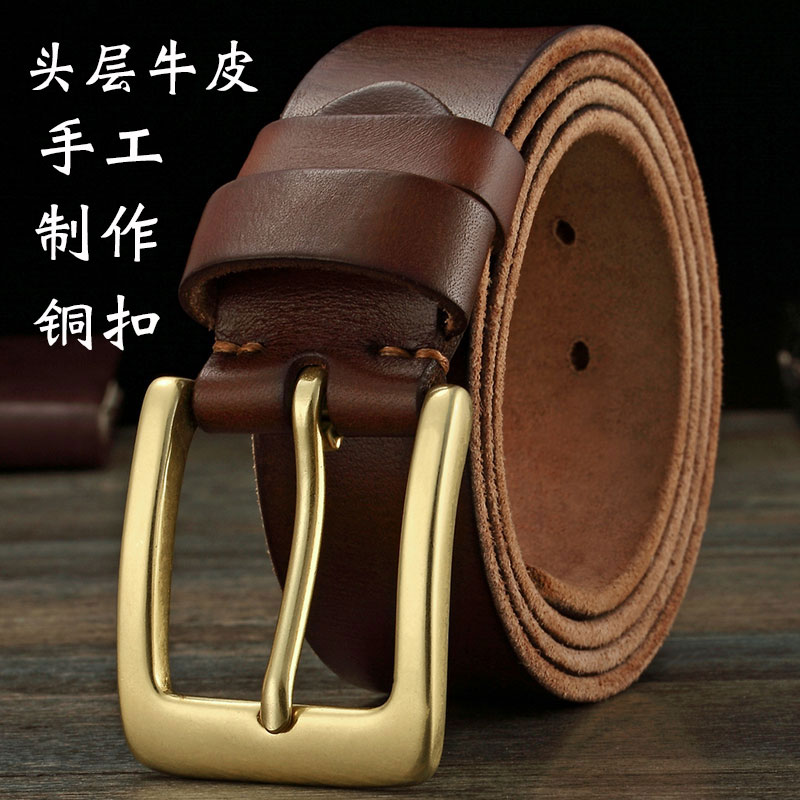 头层派铜扣皮带男纯牛皮针扣腰带男休闲牛仔裤带简约中青年复古潮