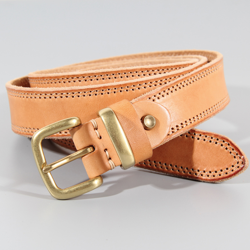 美式复古加厚头层牛皮男士铜扣皮带双针扣手工意大利真皮腰带简约