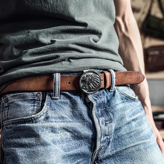 DOSORDONTS 复活升级版原创定制纯铜圆饼造型宽牛皮百搭铜扣皮带